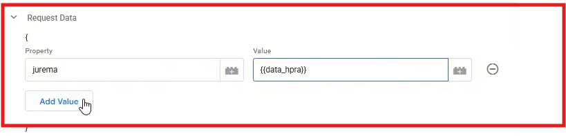 Para isso, utilize a opção Request Data, onde você pode definir manualmente quais campos deseja enviar.