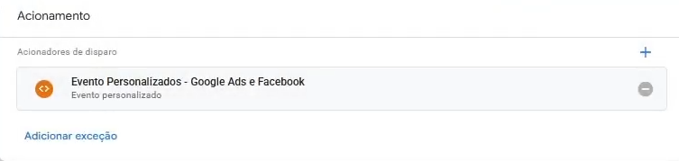 O acionador define quando o Webhook será disparado. Neste exemplo, utilizamos um evento de criação de lead, ou seja, sempre que esse evento ocorrer, o GTM Server Side enviará os dados automaticamente para o endpoint configurado. Adapte o acionador conforme a necessidade da sua implementação.