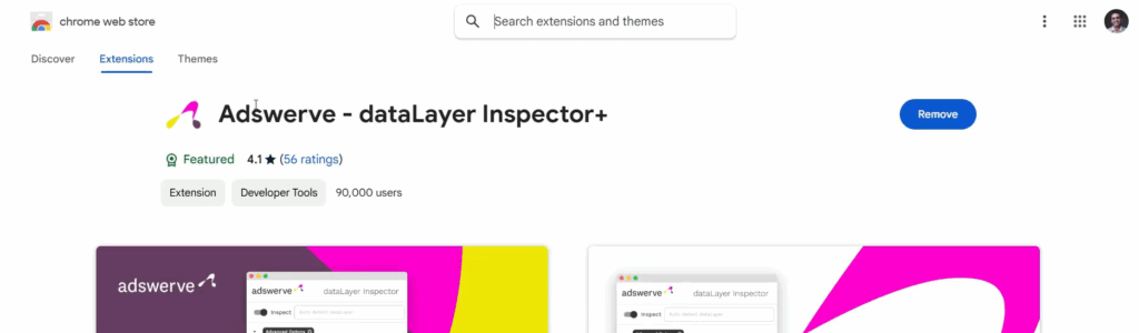 Acesse o Google Extensões e busque por: ‘Adswerve – dataLayer Inspector+’ e instale no seu navegador.