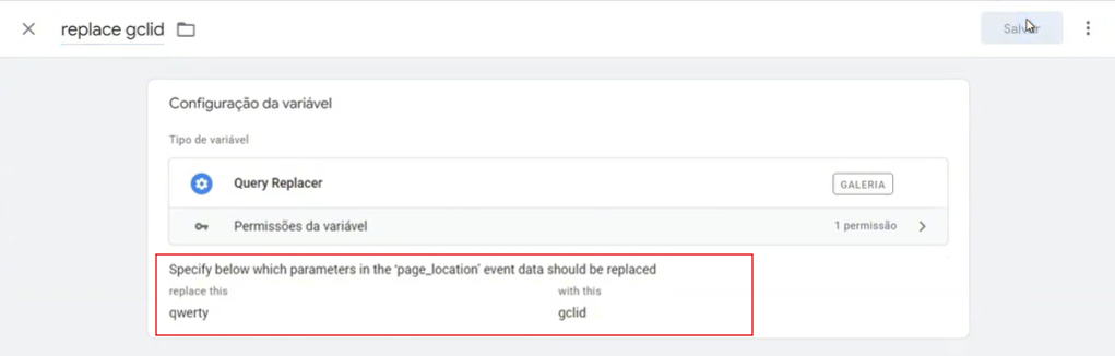 Essa configuração vai fazer com que o ‘qwerty’ que foi configurado no Google Ads seja substituido para ‘gclid’ original. Salve.