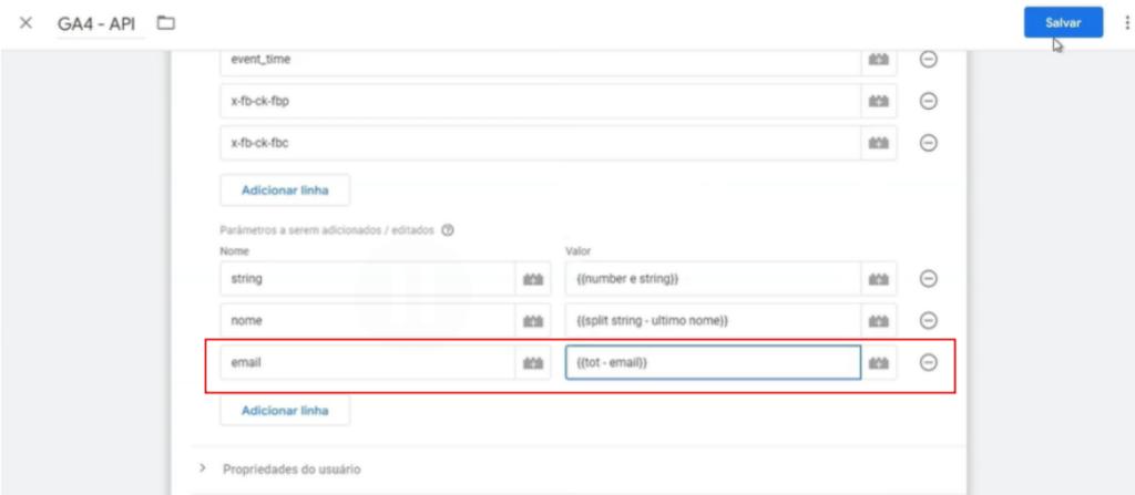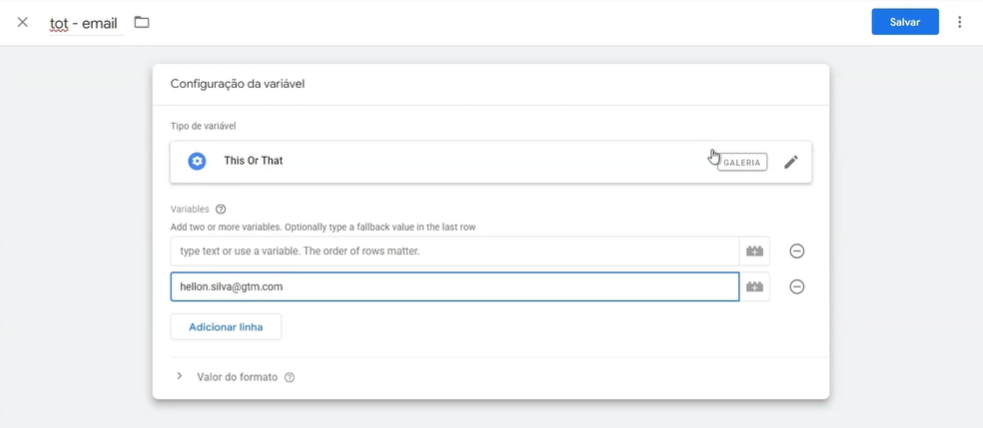 O diferencial desta configuração reside na substituição das variáveis estáticas. Em vez de vincular sua tag (como a do GA4 ou a API de Conversões do Meta) a um único campo de e-mail que pode falhar, você deve selecionar a variável This or That que você acabou de criar.