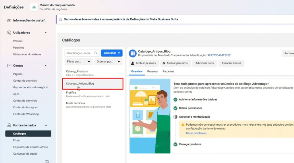 Dentro de ‘Fonte de Dados’, na aba ‘Catálogos’ acesse seu catálogo para seguir com a configuração.
