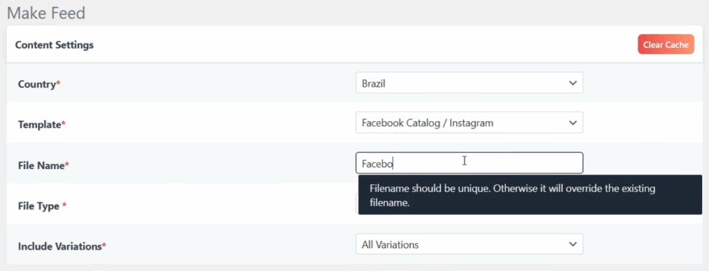 Na aba ‘Make Feed’, configure novamente um novo feed da seguinte forma: