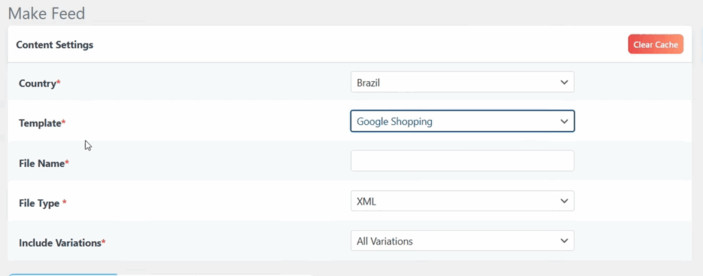 Na aba ‘Make Feed’, configure da seguinte forma: